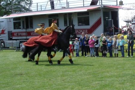 dresuurpaard, en een show met rijtuigen met diverse paarden- en